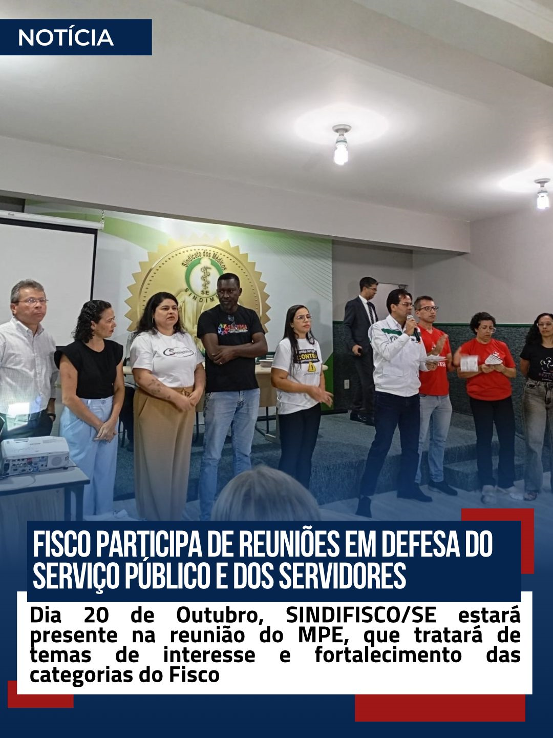 Dia 20 de Outubro, SINDIFISCO/SE estará presente na reunião do MPE, que tratará de temas de interesse e fortalecimento das categorias do Fisco