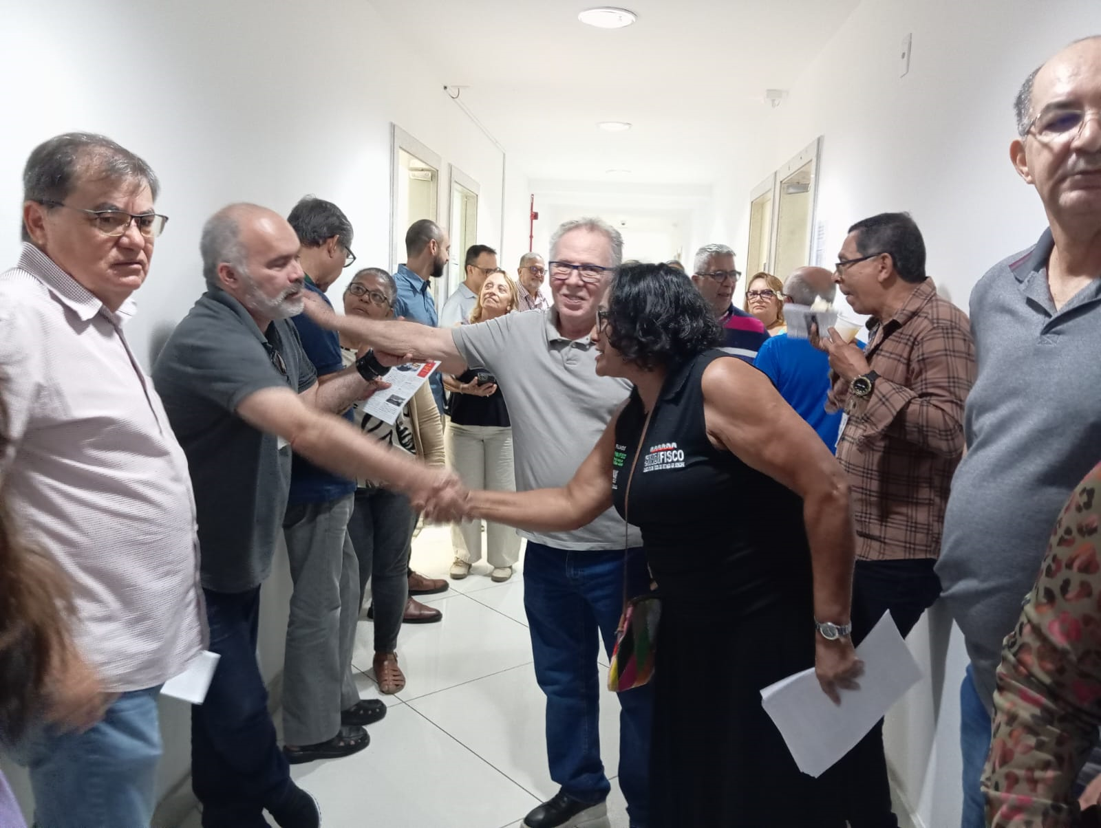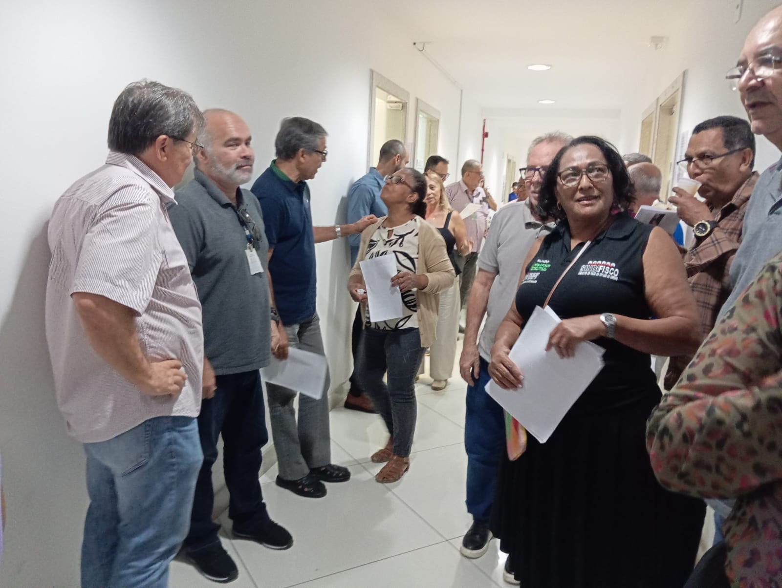 Auditores e auditoras fiscais realizaram hoje um ato, acompanhado de um café da manhã, na sede da Sefaz/SE. A mobilização cumpre a deliberação da assembleia da categoria, que aprovou a entrada em "Estado de Mobilização". O objetivo central do movimento é cobrar da secretária da Fazenda, Sarah Andreozzi, respostas efetivas sobre a pauta de reivindicações apresentada pelo sindicato.