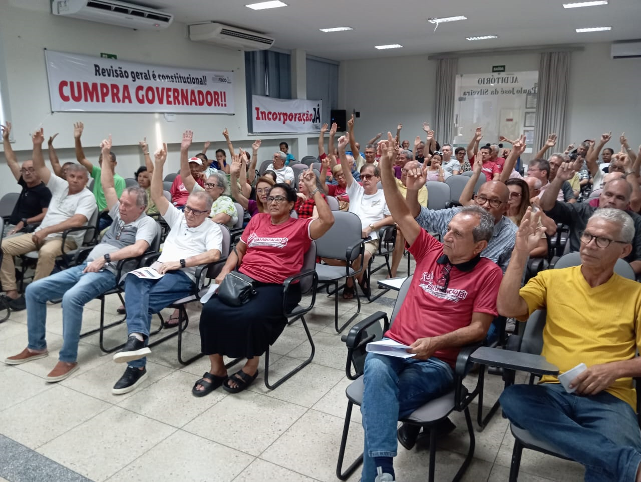 “Essa é a nossa principal reivindicação, porque alcança ativos, alcança aposentados e recompõe o poder salarial. E nós temos outra pauta também, que é a incorporação de toda a espécie de gratificação, porque o que dá dignidade ao servidor é o vencimento, é isso que dá garantia jurídica e dá dignidade ao servidor, a pauta do auxílio saúde e também ajuste do último internível da carreira”, enumerou José Antônio.