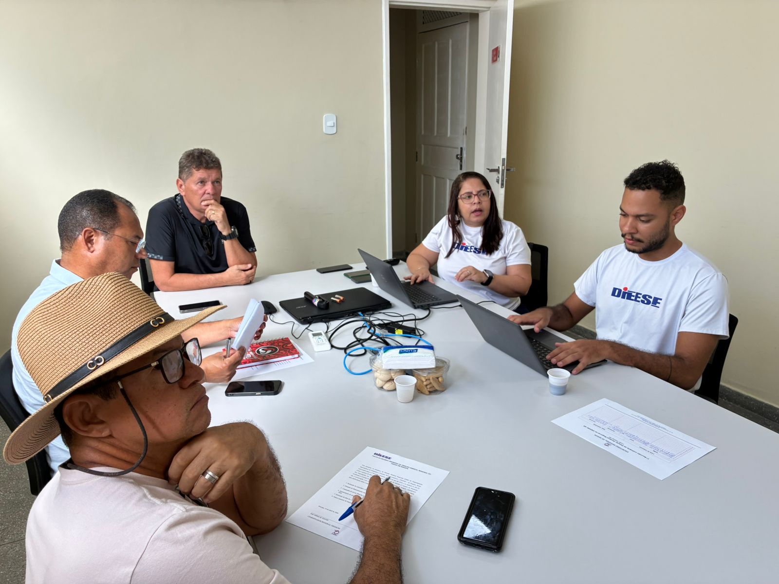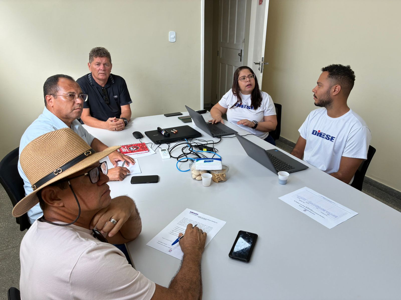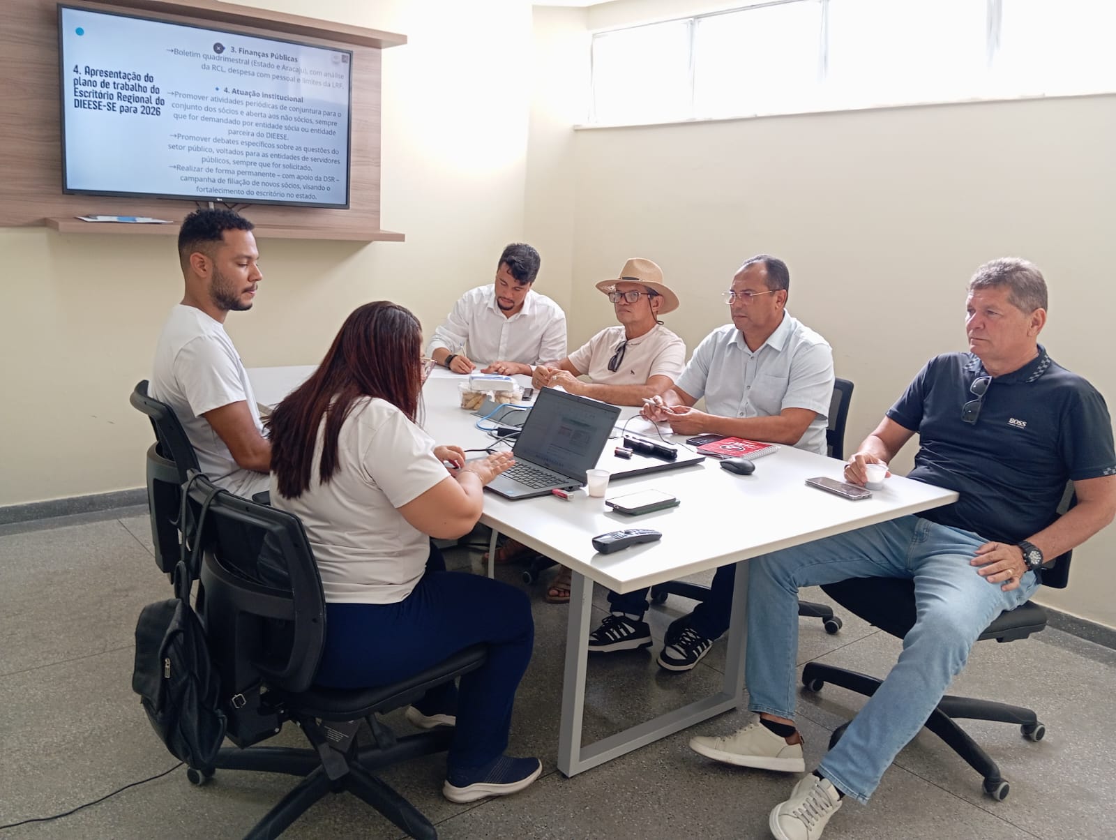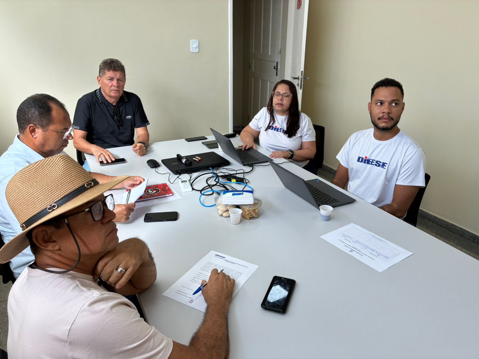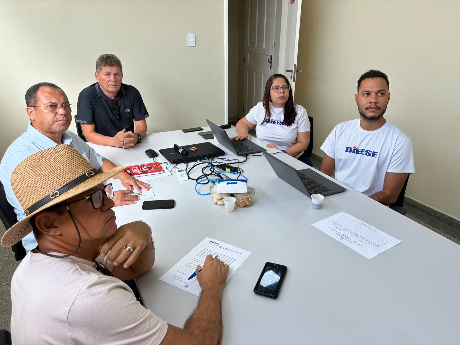 A reunião foi coordenada pelo presidente do Sindicato dos Bancários de Sergipe (SEEB/SE) e coordenador da DSR/Dieese, Adilson Azevedo. Também participaram o diretor de Política Social e Estudos Técnicos do Sindicato do Fisco de Sergipe (SINDIFISCO/SE), que é o secretário-geral da DSR, Francisco de Rezende; o presidente do Sindicato dos Comerciários e Comerciárias de Sergipe (Seca/SE), Luan Almeida, e a economista e supervisora técnica do escritório regional, Flávia Rodrigues.